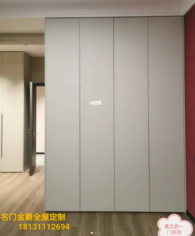 近兩年開始流行極簡風(fēng),所謂極簡風(fēng),也就是門板不在帶復(fù)雜造型,以平板居多。平板怎樣打造大氣的感覺呢?“一門到頂”受到越來越多業(yè)主們的青睞。但與此同時也岀現(xiàn)了很多不純粹的“一門到頂”。啥是真正的一門到頂呢,顧名思義就是一扇門板頂天立地(見圖一),不加任何頂封板和踢腳板(見圖二),只加頂封板也不算(見圖三)。當(dāng)然只加踢腳板也不算。